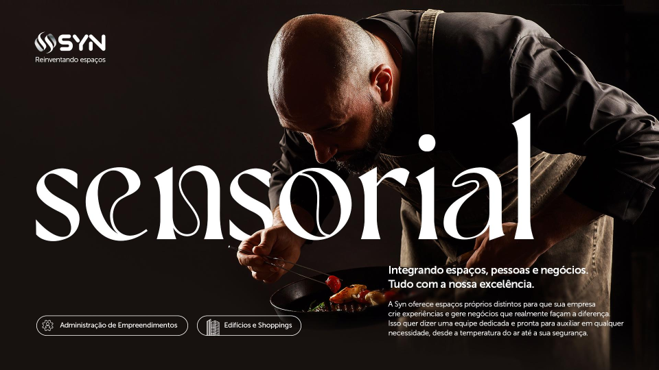 Syn, uma empresa do mercado imobiliário com empreendimentos de alto padrão, prédios comerciais e shoppings, buscava uma nova comunicação, elegante à sua altura.